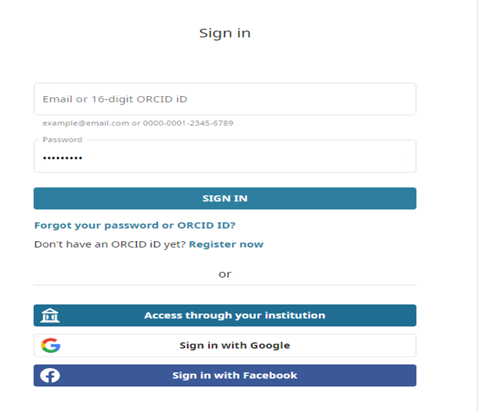 - ستنتقل إلى صفحة تسجيل الدخول باستخدام أوركيد "Sign in with ORCID" :
