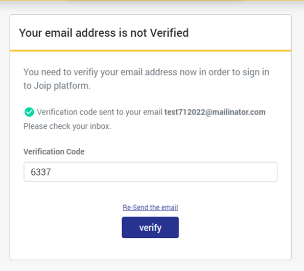 - أدخل بريدًا إلكترونيًا صالحًا للتحقق من حساب JOIP الخاص بك.