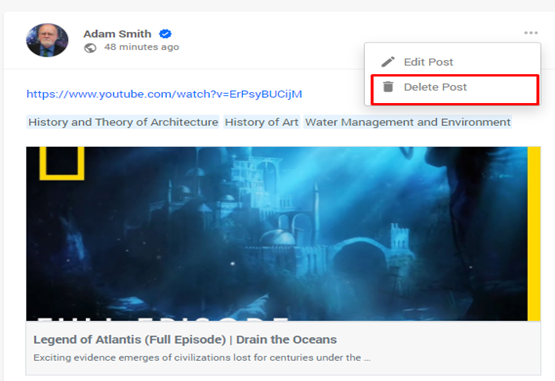 - من القائمة التي تظهر ، انقر فوق زرّ حذف المنشور"Delete Post"