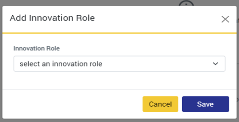 - أضف أدوار الابتكار "Innovation Roles"التي قمت أو تقوم بها عن طريق النقر فوق زر الإضافة "+" وحدد دور ابتكارٍ من القائمة المنسدلة التي تحمل عنوان "Select an Innovation Role" ، ثم انقر فوق زر الحفظ "Save".