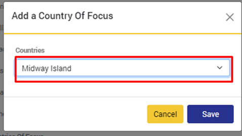 - أضف الدول التي تركز أو ستركز عليها أعمالك "Countries of Focus"