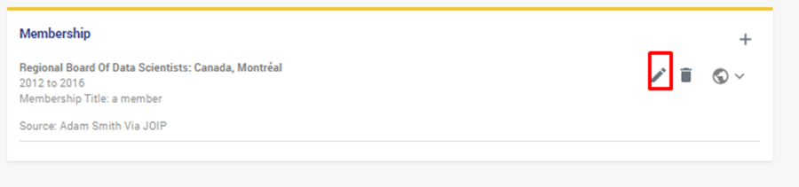 - اذهب إلى العضوية التي تريد تعديلها ، وانقر على زر التعديل: