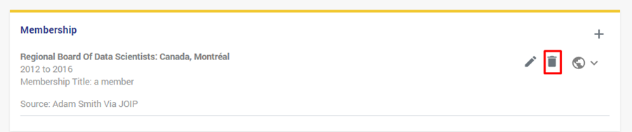 - اذهب إلى العضوية التي تريد حذفها ، وانقر على زر الحذف: