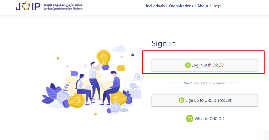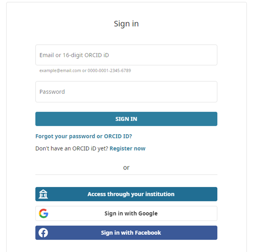 2). in the sign in/ sign up page that shows, click on "Log in with ORCID"