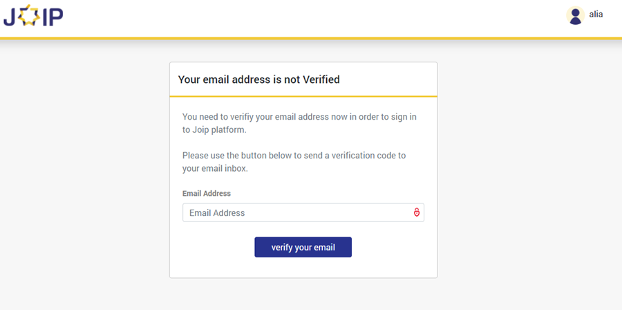 - a). enter a valid email to verify your JOIP account.