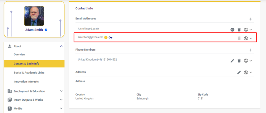 4). Now you'll be logged in to JOIP and redirected to the feed page with no problems, and the email you added to verify will be set as a verified and a primary email as shown in the "Contact and Basic Info" page.