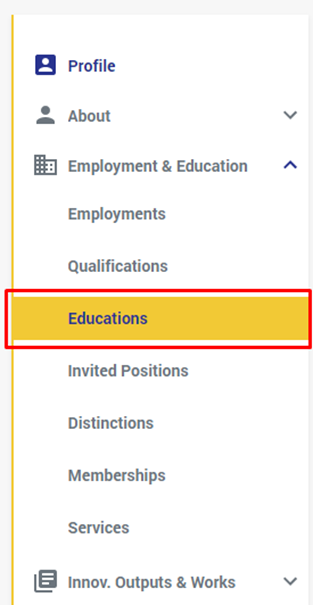 - Select "Educations" from under the "employment & Education" in the left side menu: